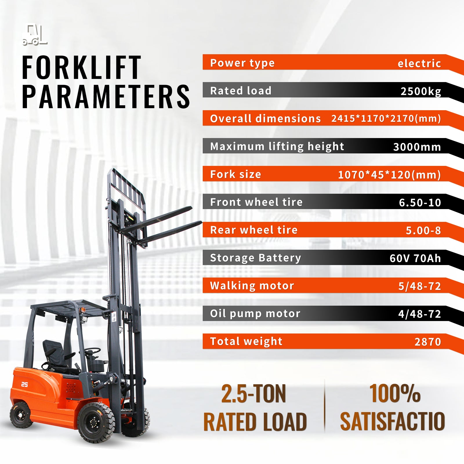 2000kg (4400lbs) Electric Forklift 3000mm Lift - 60V AC Motor Sit-Down Counterbalance Fork Lift Truck with Solid Tires & Side Shifter