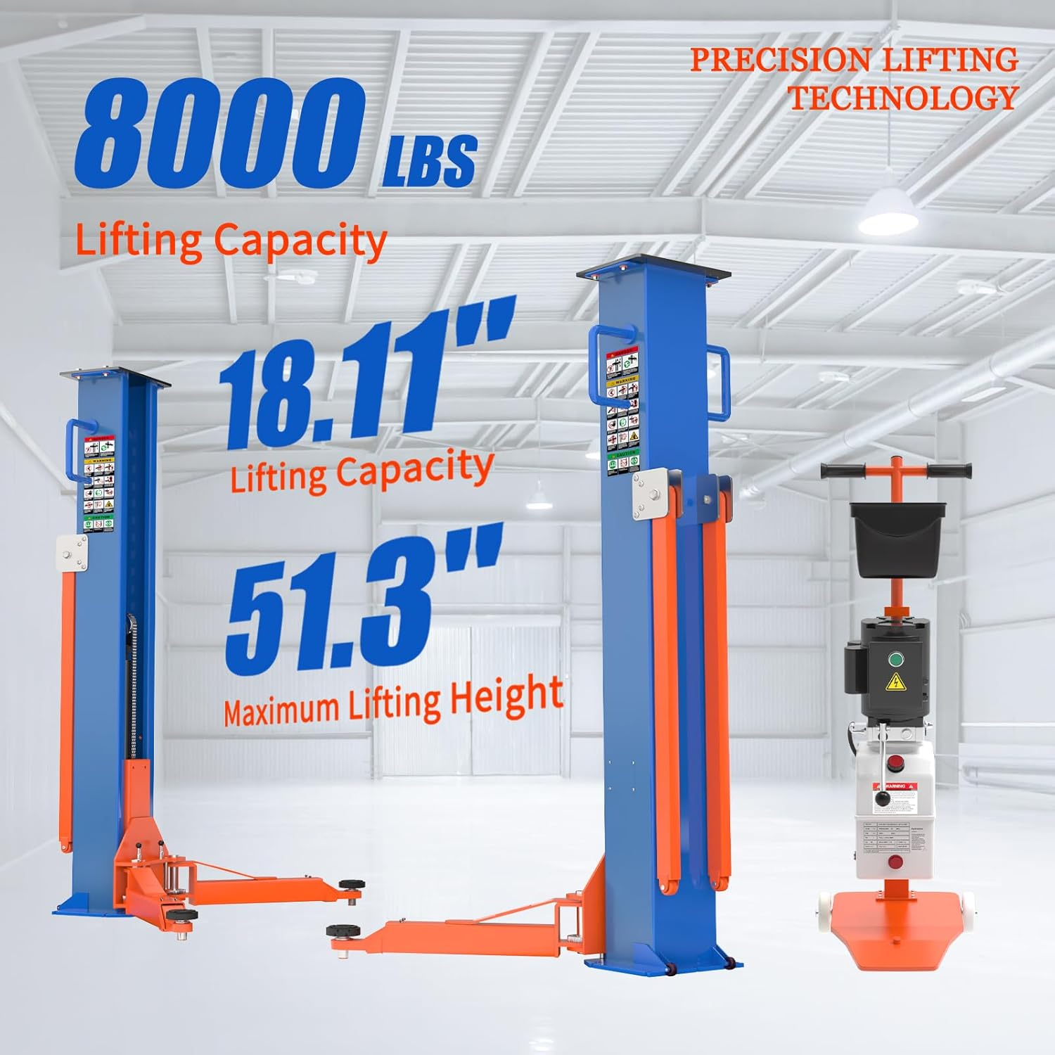 8,000 lbs Portable Two-Post Car Lift – Heavy-Duty Vehicle Hoist with Double S-Column Design & 2.2KW Hydraulic Pump